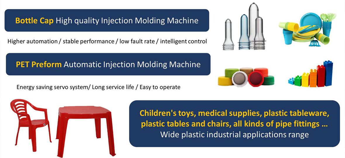 آلات عالية الأداء: توفر أجهزتنا المتخصصة الأداء الأمثل لإنتاج مجموعة واسعة من المنتجات البلاستيكية، بما في ذلك قوالب PET والأغطية والجرار وغيرها.